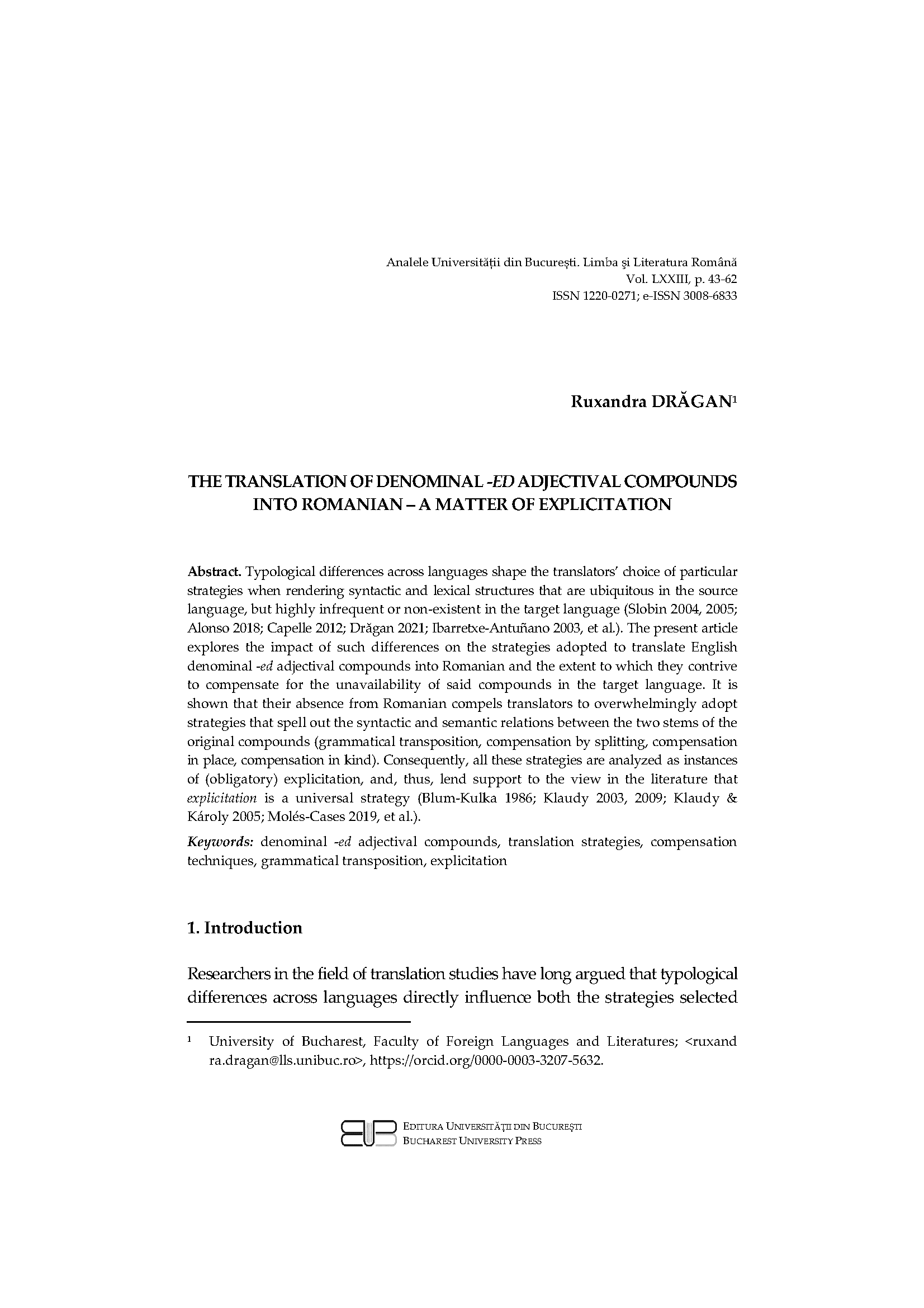 Volum 73 Nr. 1 (2024): Analele Universității București. Limba și literatură română