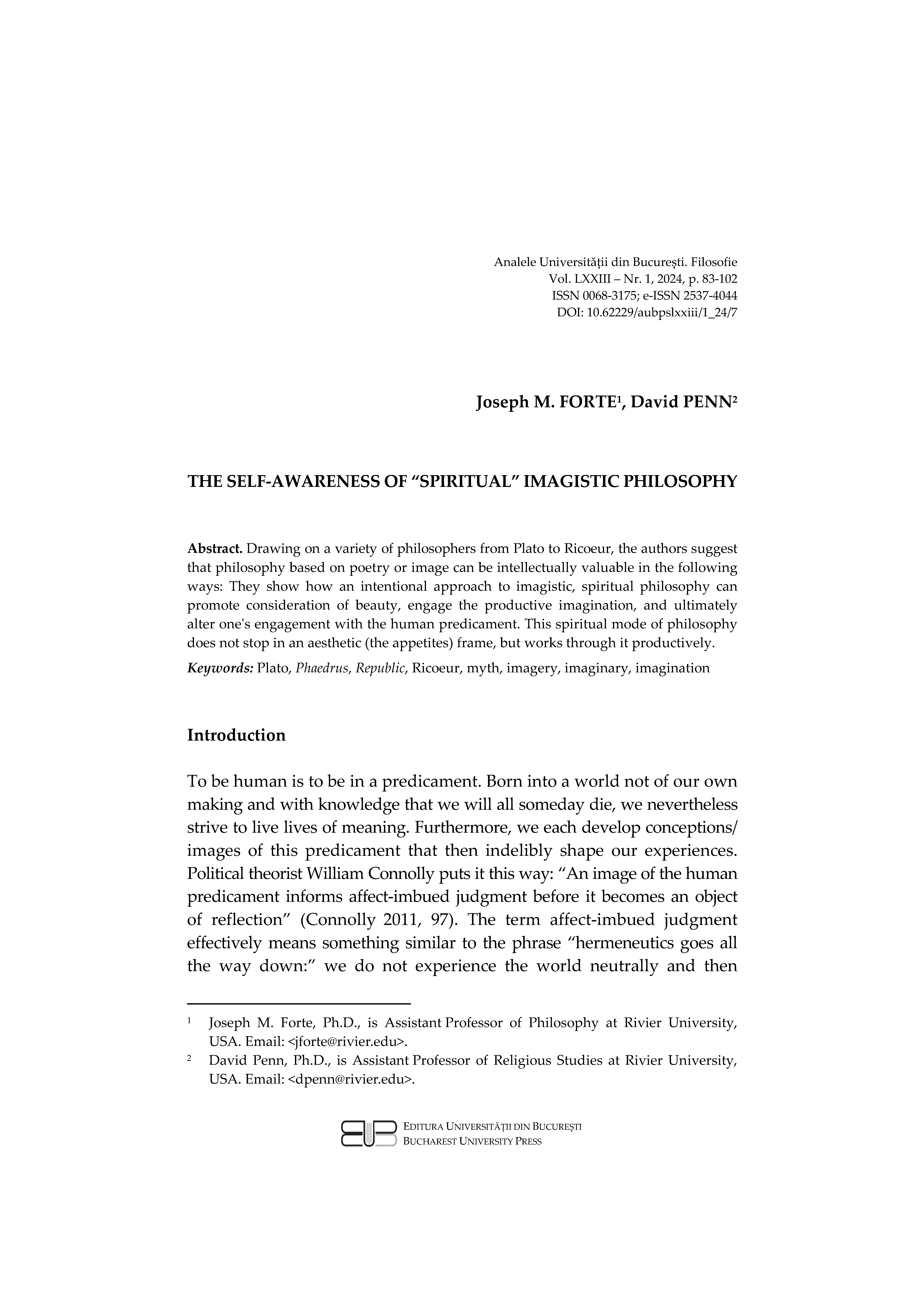 Vol. 73 No. 1 (2024): SPECIAL ISSUE: PHILOSOPHY AS A SPIRITUAL PRACTICE Pre- and post-Christian Challenges of Subjectivation, Truth and Knowledge