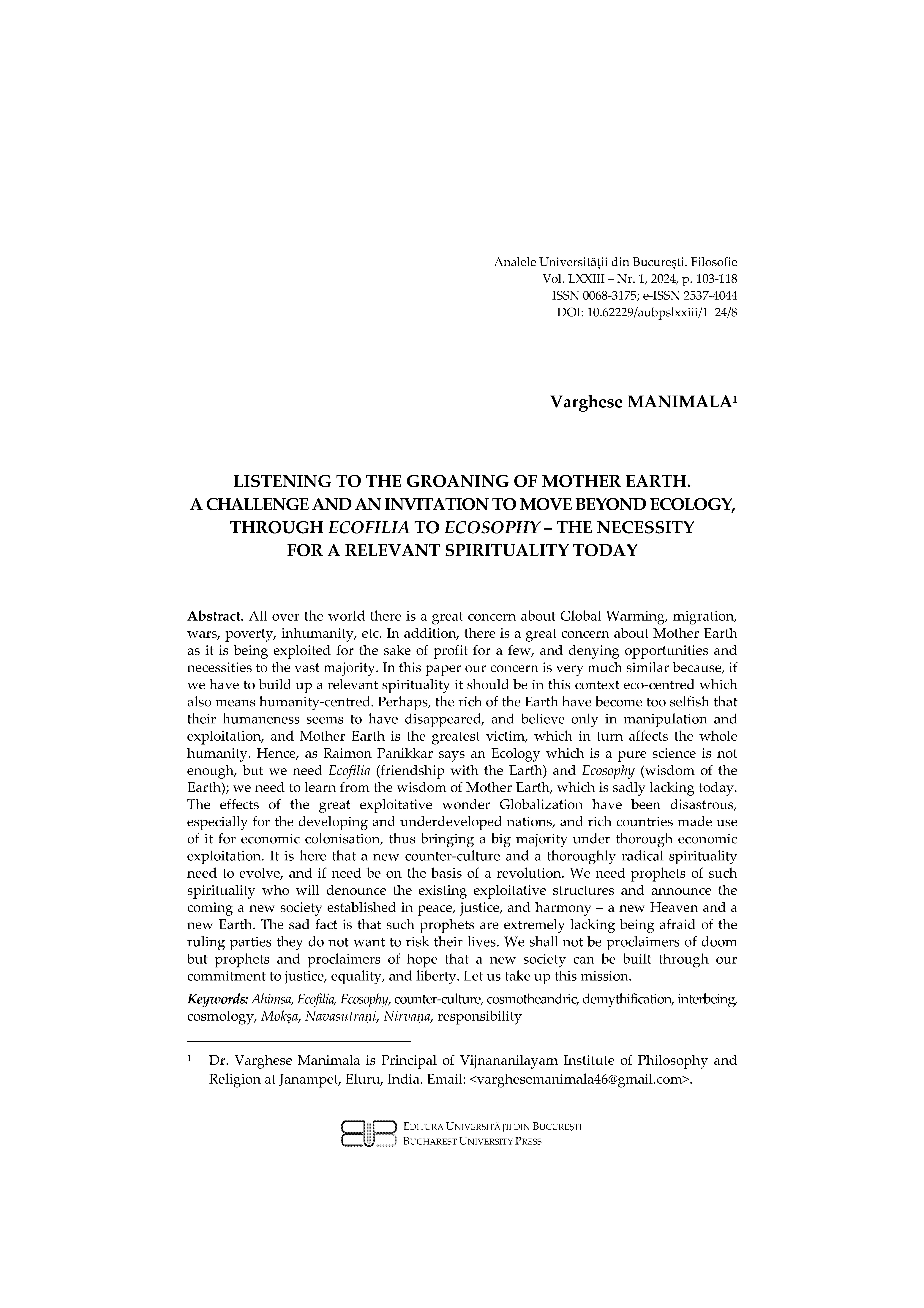 The journal publishes articles considered of relevance for those interested in the field of philosophy and is addressed both to the Romanian and international philosophical community, with a special accent on East- and Central-European area.