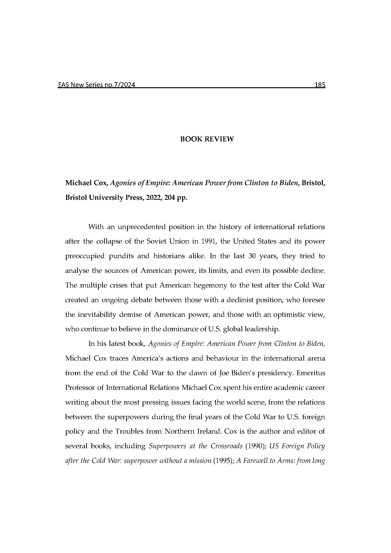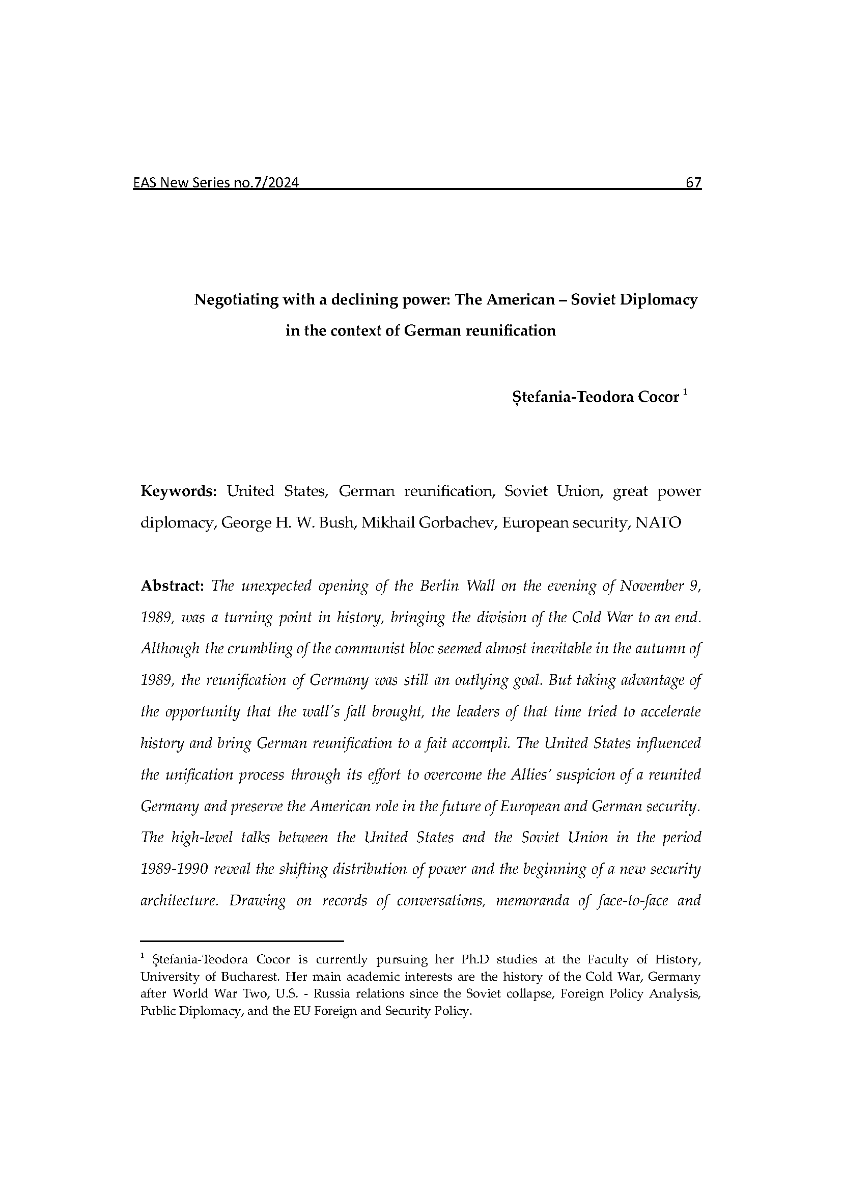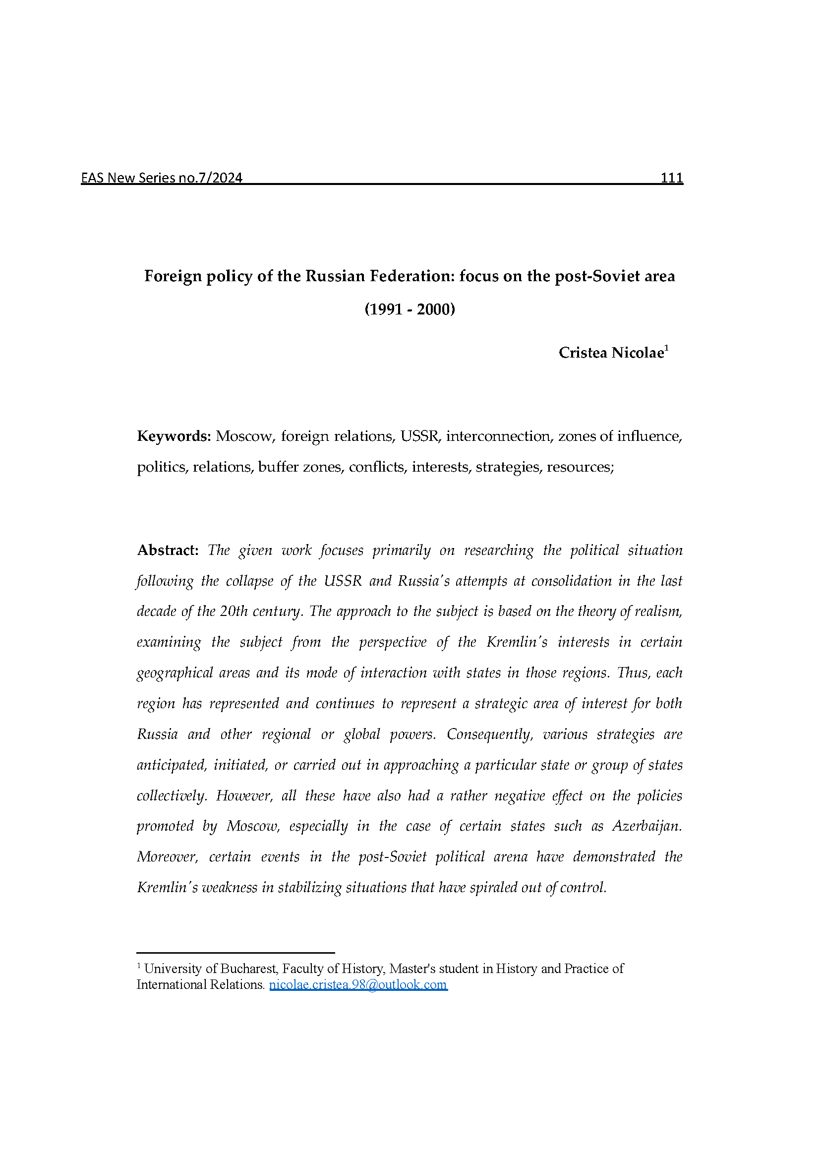 Euro-Atlantic Studies is published by the Centre for Euro-Atlantic Studies, Bucharest. The Centre is an academic body that owes no allegiance to a government or political agency. It does not hold opinions of its own. The views extended in this magazine are the responsibility of the authors.